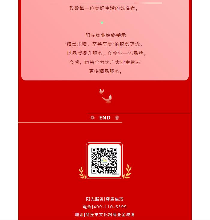 陽(yáng)光物業(yè)成立于2003年5月,專注物業(yè)服務(wù)行業(yè)20余載,陽(yáng)光物業(yè)現(xiàn)為河南省物業(yè)管理協(xié)會(huì)副會(huì)長(zhǎng)單位、商丘市物業(yè)管理協(xié)會(huì)副會(huì)長(zhǎng)單位,公司注冊(cè)資金1020萬(wàn)元,陽(yáng)光物業(yè)連續(xù)多年被河南省及商丘市評(píng)為先進(jìn)企業(yè)、優(yōu)秀企業(yè)。