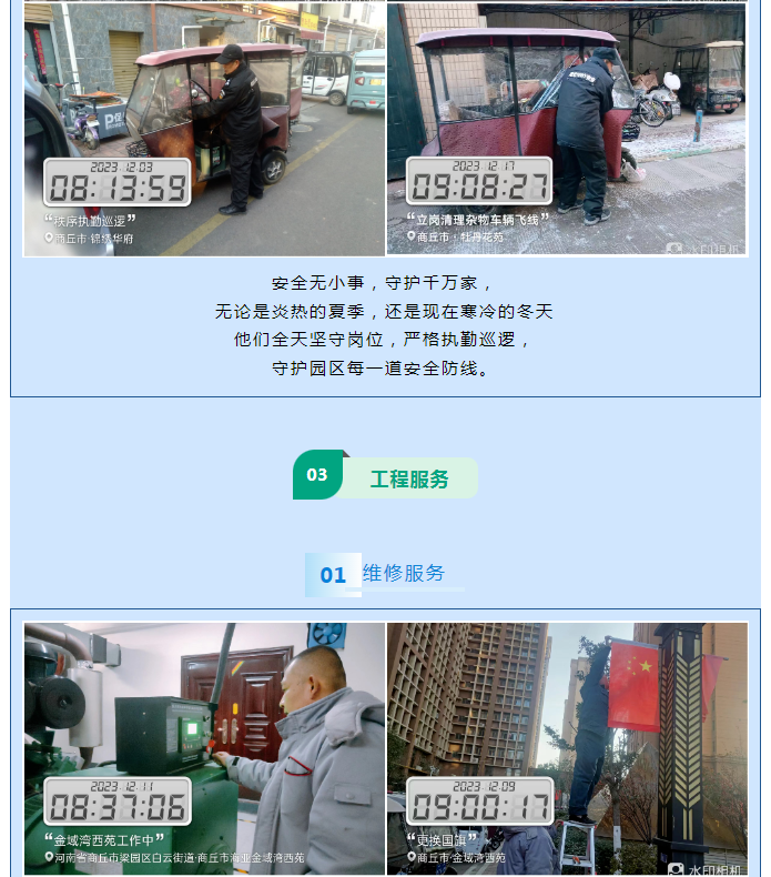 陽(yáng)光物業(yè)成立于2003年5月,專注物業(yè)服務(wù)行業(yè)20余載,陽(yáng)光物業(yè)現(xiàn)為河南省物業(yè)管理協(xié)會(huì)副會(huì)長(zhǎng)單位、商丘市物業(yè)管理協(xié)會(huì)副會(huì)長(zhǎng)單位,公司注冊(cè)資金1020萬(wàn)元,陽(yáng)光物業(yè)連續(xù)多年被河南省及商丘市評(píng)為先進(jìn)企業(yè)、優(yōu)秀企業(yè)。